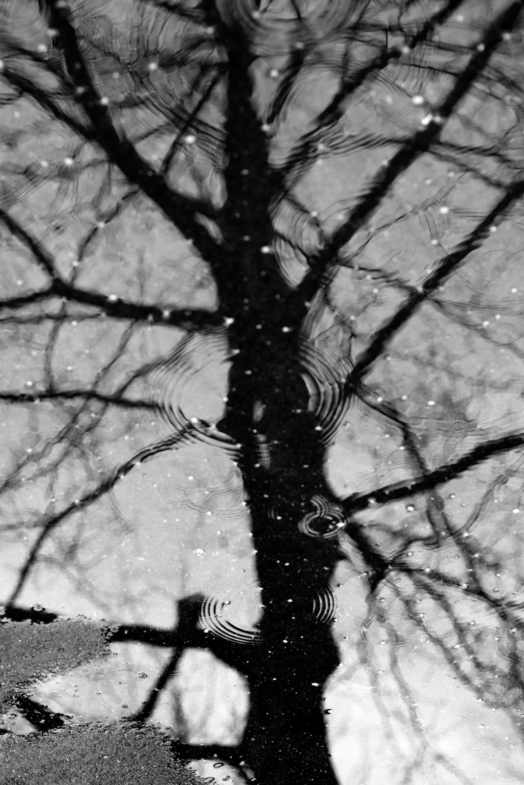 I saw my reflection as I walked by this puddle of melted snow so I walked back and took this shot. That's when I noticed the cool tree branch reflections.