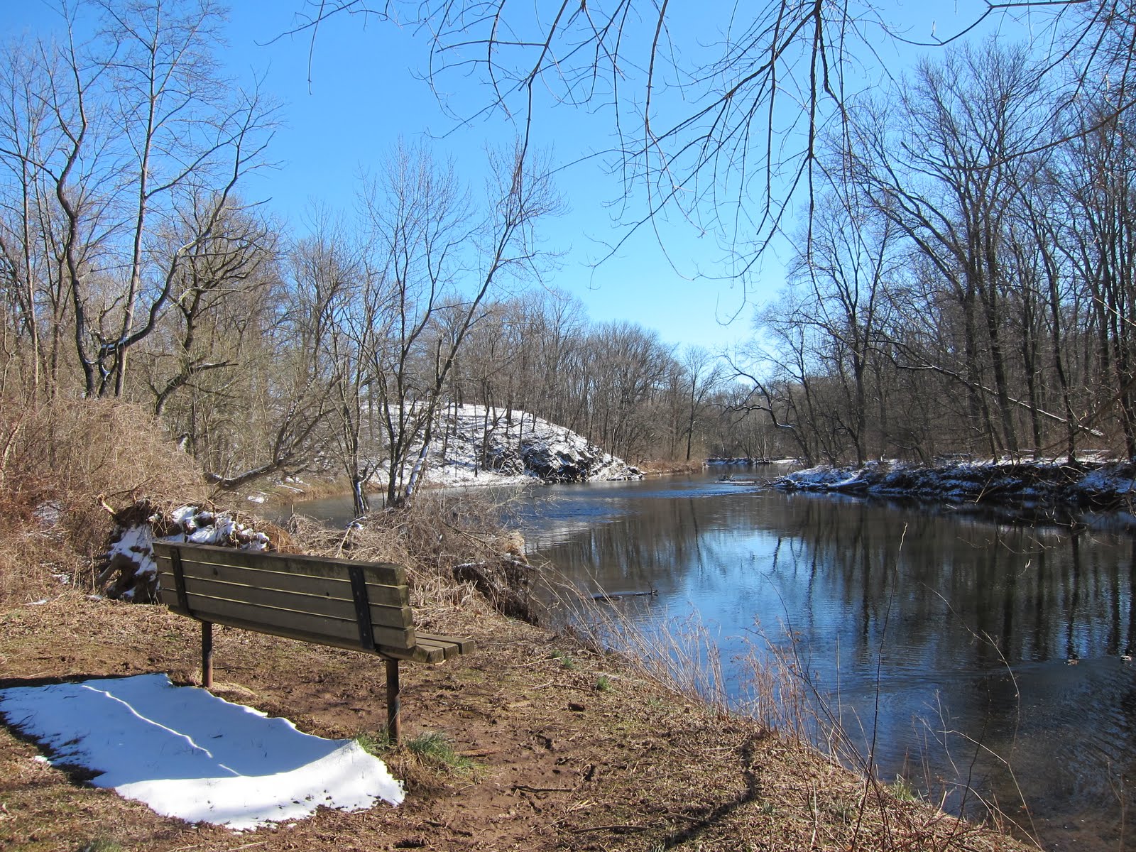 I haven't had much time for blogging or taking pictures lately but yesterday was such a beautiful day so I decided to walk in the park near my apartment. It's a big park with several entrances and plenty of wooded trails. I took my point and shoot camera and clicked away. The two photos above are straight out of the camera snapshots of one of my favorite spots. It's nice to see how this place changes with the seasons. Most of the time I get to enjoy these views all to myself except for the occasional dog walker or horseback rider. I dedicate this post to my friend Malyss in Nice France who has a daily blog about benches. I never really noticed benches before I started following her blogs "Chronicals from the shore" and "Benches on my way"